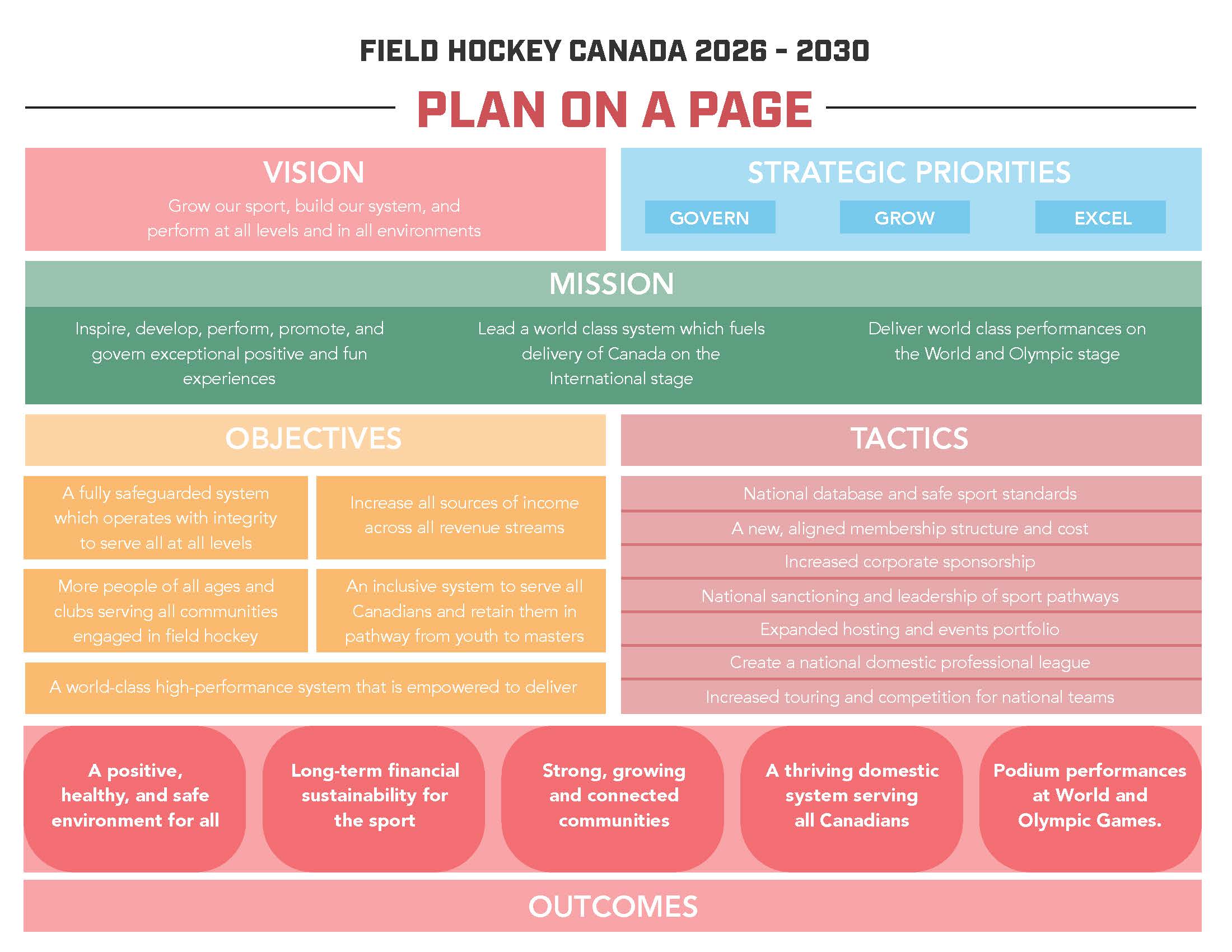 Field Hockey Canada’s Strategic Plan 2026-2030 is a working document which lays out the direction for the next quad.